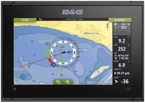 De Vulcan 9-kaartplotter beschikt over een multi-touch zeilinterface, voor toegang tot de bekroonde functies B&G SailSteer en SailingTime.